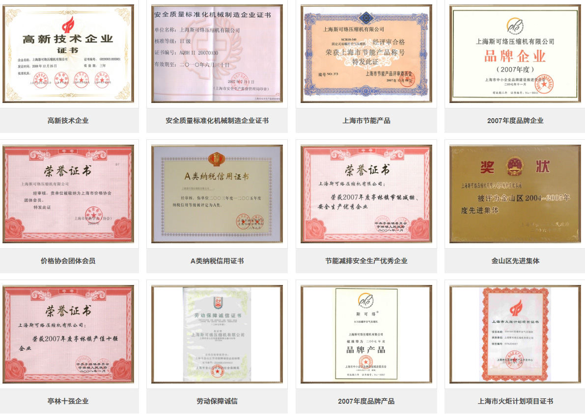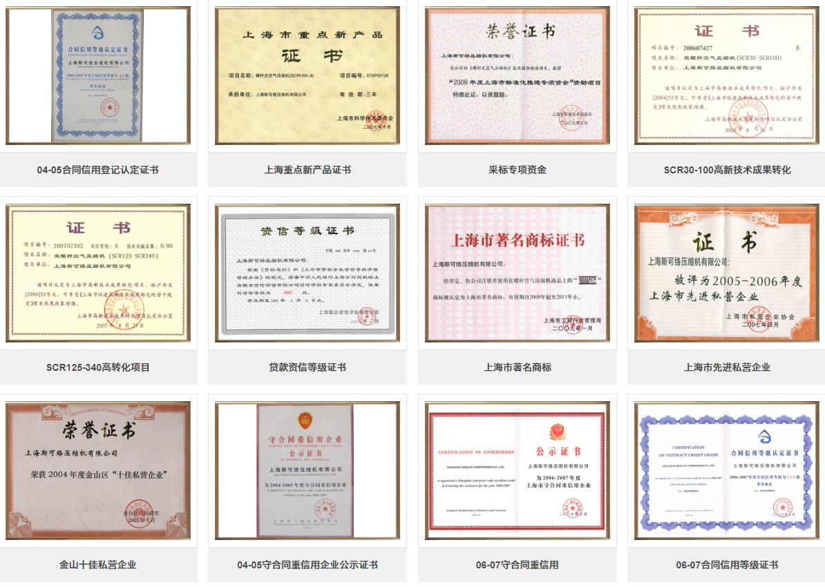 斯可絡擁有20多年空壓機行業經驗的研發團隊,掌握核心螺桿技術,基于德國日本技術持續自主創新,相繼獲得86項國家專利認證,空壓機產品通過歐盟CE美國UL、俄羅斯GOST、德國TUV CLASS 0等30多項全球認證。