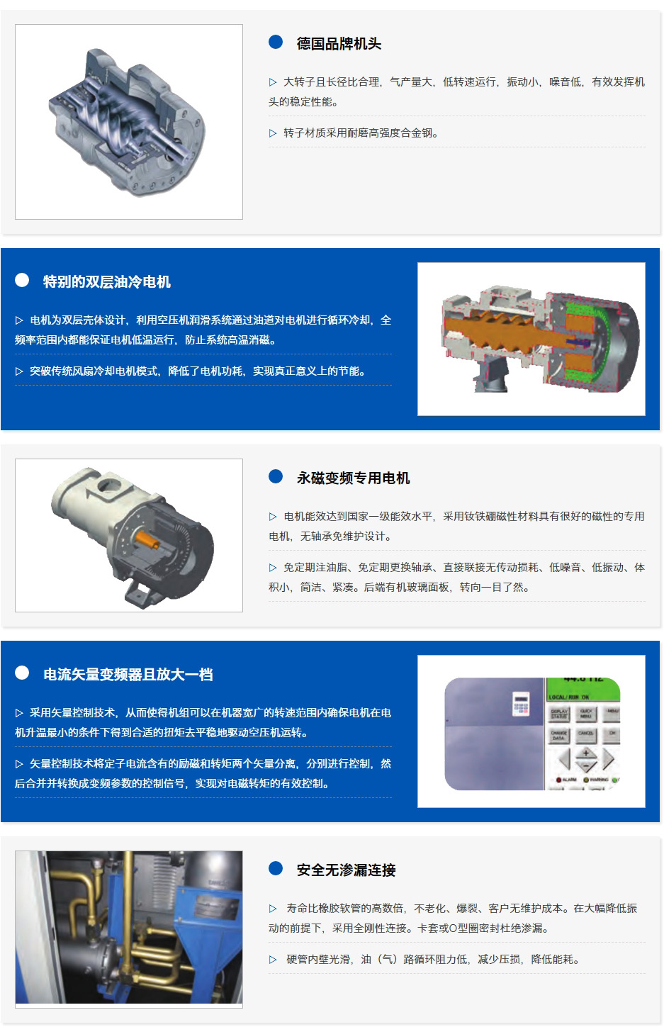 進口軸承和潤滑脂,確保機頭壽命和可靠性,壓縮空氣性能持久穩(wěn)定