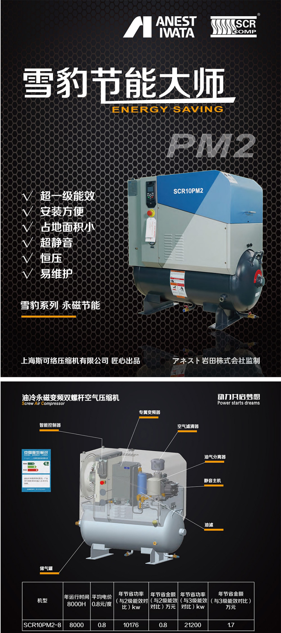進口軸承和潤滑脂,確保機頭壽命和可靠性,壓縮空氣性能持久穩定