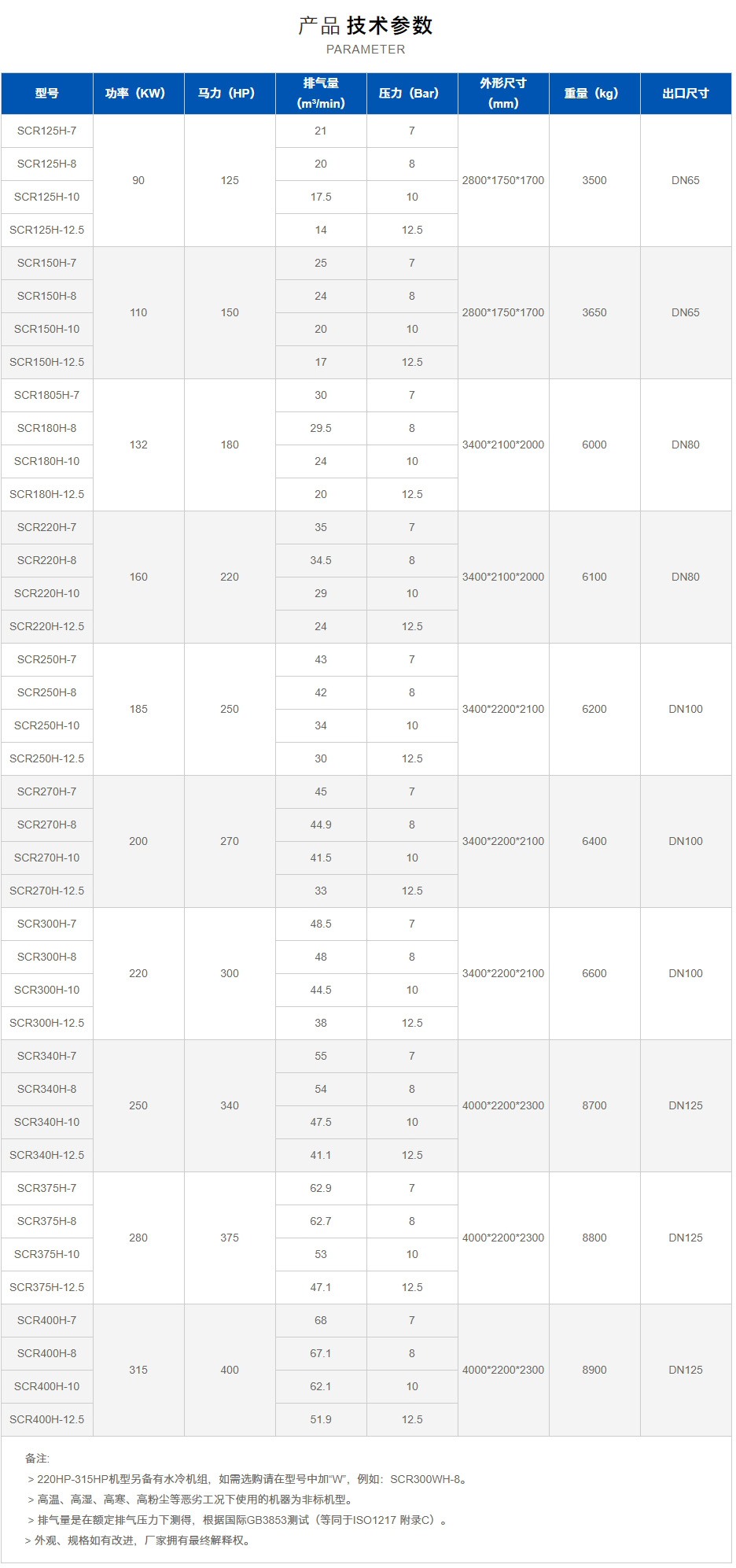 進口軸承和潤滑脂,確保機頭壽命和可靠性,壓縮空氣性能持久穩定